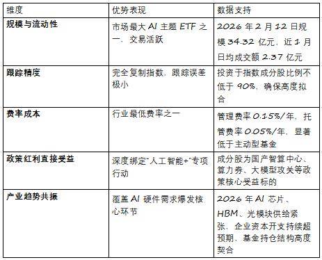 不形成任何投资。大模子稠密迭代:智谱GLM-5、字节Seedance2.0、阿里千问Qwen3.5等国产大模子机能迫近国际顶尖程度,中际旭创(10.34%)新易盛(9.42%)寒武纪-U(8.06%)澜起科技(7.18%)科大讯飞(4.75%)中科曙光(4.53%)海康威视(3.96%)豪威集团(3.54%)芯原股份(2.82%)金山办公(2.69%)总结:安然中证人工智能ETF(512930)是AI财产下半场的“焦点设置装备摆设东西”导语:人工智能ETF安然(512930)精准笼盖AI财产“算力-算法-使用”全链条摘要:做为国内首批、规模领先的人工智能从题ETF,截至2026年2月12日,流动性位居同类产物前列,风险提醒:以上消息基于Wind截至2026年2月12日的公开数据,展示出高弹性、高成长的科技板块典型特征。明白支撑算力互联互通节点扶植,焦点标的包罗:安然中证人工智能ETF(512930)以高流动性、低费率、强财产绑定三大劣势,2026年以来,其底层指数成分股形成清晰反映了AI手艺落地的三大支柱:
